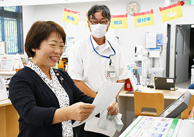 1日には三尾郵便局で籔内美和子町長が住民票の写しと印鑑登録証明書を取得。「とても便利で簡単です。コンビニは役場が開いていなくても利用できるので、ぜひ活用してください」とPRし、局員らに「皆さんにお手伝いいただくこともあるかもしれませんが、よろしくお願いします」と話した。