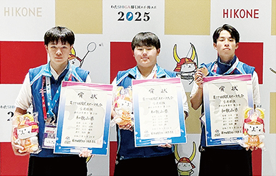 第79回国民スポーツ大会弓道競技が9月28日から30日まで滋賀県彦根市で行われ、少年男子遠的の部で宮川真明(日高高3年)、石方海莉(紀央館高3年)、塩路駿(日高高3年)の地元3選手がメンバーの和歌山代表が3位に入った。近的でも7位入賞と健闘を見せた。(6面にボウリング結果)
