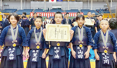 愛知県剣道道場連盟主催の愛道連杯争奪全国少年剣道錬成大会が19日、小牧市のパークアリーナ小牧で開催され、みなべ町の梅花剣道友の会が小学生の部で準優勝した。全国の強豪が集まる大会で、梅花はメンバー5人のうち4人が5年生ながら、6年生主将がチームを引っ張り、堂々の銀メダルを手にした。