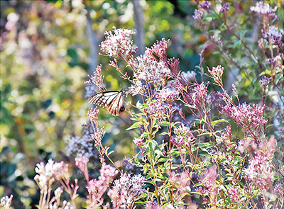 印南町西ノ地、切目神社東側に隣接する「切目懐紙なぎのさと公園」で今年も、渡りチョウのアサギマダラが飛来し始めた。