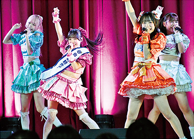 中学校体育館のステージには、町観光大使でアイドルの由良ゆらさん(22)=千葉県出身=が所属する人気グループ「#よーよーよー」が登場。2022年の大使就任以来、初めてのライブで、関東など遠方からもファンが集結。メンバー6人はそれぞれのイメージカラーの衣装でステージに立ち、キュートで勢いあるダンスとポップな歌声で観客の心をつかんだ。客席後方では「推しTシャツ」に身を包んだ熱烈なファンたちがペンライトを振り回し、「ゆーらーちゃん! ゆーらーちゃん! おーれーの ゆらちゃん!」などと絶叫コール。体育館が熱気に包まれる中、初めて目にするアイドルファンの迫力に町民も驚いた表情を見せていた。