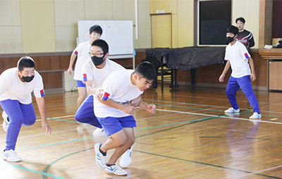 来年4月、中津、丹生、早蘇、美山中学校と統合し、新しい央和中学校が誕生する。同校は「子どもたちに中津中学校での楽しい思い出をつくってもらいたい」と学校運営協議会(畑忠良会長)と連携し、今回のイベントを企画。社会人チームの大阪上方ManGunners(マンガナーズ)のメンバー4人を講師に招いた。