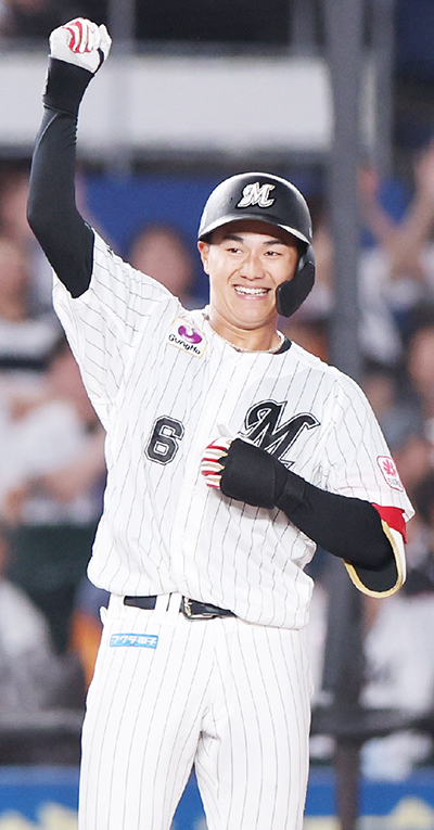 西川選手は昨秋のドラフトで千葉ロッテから1位指名を受けて入団。今シーズンは打率2割8分1厘(リーグ6位)、3本塁打、37打点をマーク。二塁打27本はリーグ最多。近く発表される新人王の有力候補としても注目されている。