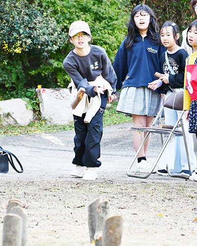 参加者は役場を出発し、各ポイントでゲームに挑戦したり、町の風景を覚えたりしながら歩き、設定された時間でのゴールや、ゴール後に出題される町に関するクイズの得点を競った。里地内では、ボウリングのピンのように丸太を立て、別の丸太を投げて倒すゲームが用意され、参加者は次々と挑戦。丸太が倒れるたびに歓声が上がっていた。