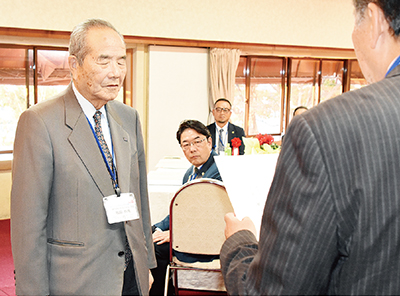 1975年12月、全国で1306番目、県内で18番目のクラブとして発足。式典では濵口会長があいさつし、「一人でも多くのロータリアンを増やし、諸先輩方から託されたボールを5年後、10年後のクラブの隆盛のため、今この時、そしてこれからも会員一丸となって地域社会に貢献していく所存」とあいさつした。席上、発足当時からのメンバーで名誉会員の塩路哲英さん(83)と現正会員の森本旭さん(82)に感謝状を贈った。