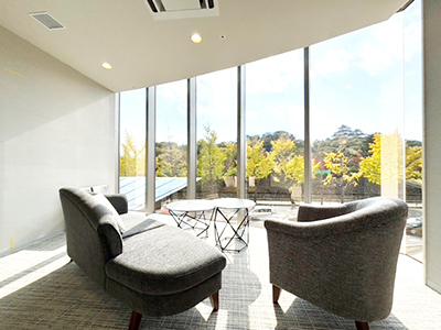 健診では1日ドック、2日ドック、脳ドック、一般健診、生活習慣病予防健診などを提供。プレミアムドックは和歌山城が望める個室のプレミアムルームを2部屋用意し、医療ツーリズムとして海外からの健診客も受け入れる。また、健診誘導システム「HosPad(ホスパッド)」の導入で、受診者は配布されたタブレットを使って混雑状況や待ち時間を確認でき、効率よく次の検査が受けられる。