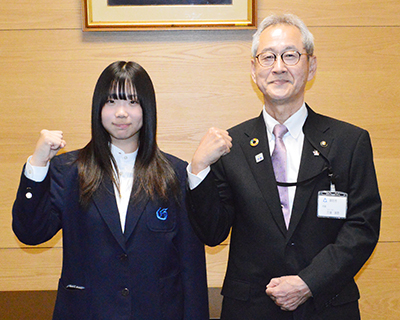 18日には市役所に三浦源吾市長を訪ね、「これまでの全国大会では成績を残せていないので、今度こそ何か持って帰りたいと思います」。三浦市長は「優勝といううれしい報告を待っている。さらに練習を積んで健康に注意して頑張ってほしい」とエールを送った。