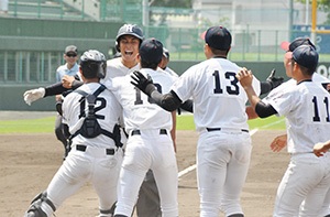 写真=南陵7回2死二塁、山﨑が決勝の適時打