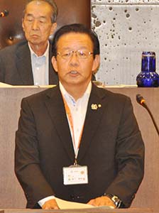 開式と同時にあいさつに立った津村会長は、1928年9月13日に弁護士の井上豊太郎氏によって創刊されたことなど歴史を紹介し、「戦前、戦中、戦後の幾多の困難を乗り越えてきた。創刊号で井上氏は『地方新聞は読者の善良な友人であれ』と書いている。地方新聞の真髄をついた言葉。私はそれまでの社是の『公平無私』に『一筆同心』を加え、全社員が一丸となって、常に読者と同じ目線でいい紙面を作るよう心がけ、皆様のご支援のおかげで今日を迎えた。だが時代は変わり、活字離れが進んでいる。100周年へ向かう次の10年はこれまで以上に厳しいものとなる。新しい役員の皆さんにはそれを切り開いて、輝かしい100周年を迎えられるよう祈念したい」と述べた。続いてマイクの前に立った津村周社長は「誰でもどこででも簡単に情報を発信できる『情報氾濫時代』を迎えているが、スピードはあっても責任のない情報。地方新聞の記事は記者が足でかせいだ正確なものであり、その地域の情報に関しては世界一。それが地方新聞の魅力になっている。これからは時代に対応したこと、地域の皆様にとって本当に役に立つことをいろいろやっていきたい。『温故知新』から一歩進んで『温故創新』で新役員、社員とともに挑戦していく」と決意を述べた。来賓を代表し、まず仁坂吉伸知事が「ローカルな情報を丁寧に拾って提供し、読者と双方向のやりとりができている点が素晴らしい」、続いて二階幹事長が「日高新報には子どもの時から親しんでいた。大きなまちではないのに地方新聞が充実しているのは、地域の皆が文化に熱心に取り組んでいる証拠で誇るべきこと」と祝福。龍神康宏御坊市副市長が柏木征夫市長のメッセージを代読、中村裕一県議も祝辞を述べた。
