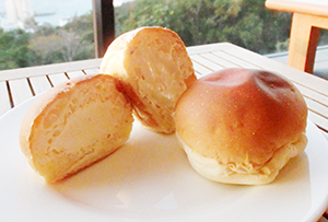 写真=乱切りを説明する更井会長㊨