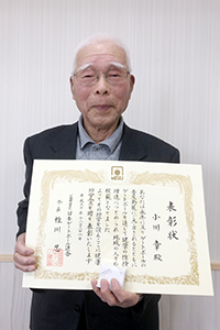小川さんは1989年(平成元年)に定年退職。当時龍神村ではゲートボールが盛んで20以上の地元チームがあり、友人の誘いで参加するように。いまも護摩山チームに所属して熟練したプレーを披露。農業も現役で頑張っている。協会事務局の仕事もこなしており、「ゲートボールを続けていることが健康につながっています」とにっこり。「受賞は大変うれしい。皆さんの助けで続けることができています」と喜んでいる。