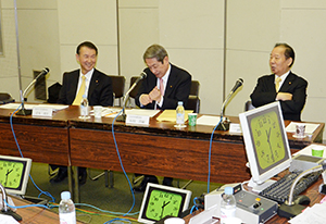 「あおい」(写真㊦、間口100㌢、奥行き46㌢、高さ80㌢)は、京金彩で描かれた見事な御所庭の絵や豪華な屏風、金彩加工を施した親王揃えなど見どころたっぷりのお雛さま。上質な収納セットをお探しの方にオススメ。