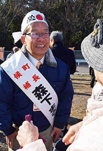写真=笑顔で支持拡大を図る森下候補