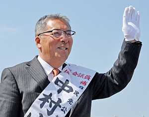 県議選は2日、早くも中盤入り。御坊市選挙区は共産党新人の楠本文郎候補(64)と自民党現職の中村裕一候補(59)が激しい舌戦を繰り広げている。期間中唯一の“選挙サンデー”となった31日は、両候補とも市内全域で街宣、街頭演説を精力的に展開。楠本候補は「国保引き下げを」、中村候補は「自民党の私に任せて」と支持拡大へ声を張り上げた。