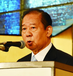 最後は最高顧問の伊吹文明代議士が「志帥会が力を合わせ、二階会長を中心に日本の政治のために頑張る」と力を込め、全員が舞台に上がり、参院選必勝を期して乾杯した。