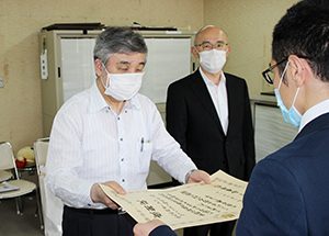 泰地室長は「梅干しで被災者の皆さんが少しでも元気になってもらえればと思います」と思いを込め、尾﨑隊長は「和歌山からも応援しているという気持ちを届けたい」と話した。