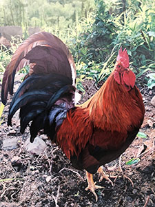 前田さんの作品は「龍神地鶏」。F50号(116㌢×91㌢)の大作。親戚が飼っている龍神地鶏を写真撮影し、油絵で忠実に再現した。まるで写真のような仕上がりで、とくに土の部分の複雑な色の付け方が難しかったという。鶏が強調されるように、実際の色よりも少し鮮やかにするなど工夫した。高校に入学してから油絵を始め、この作品はコロナで休校中も家でコツコツ描き、10カ月かけて完成させた。「いままでで一番よく描けた。次も大好きな鶏を描きたいです」と笑顔を見せた。