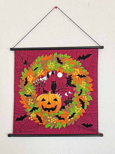 おはら呉服店に、秋らしいデザインのタペストリーが入荷しています。