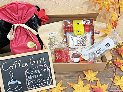 「朝晩冷え込むようになり、温かいコーヒーがおいしく感じられる季節になりました。この機会にコーヒー好きな方、お世話になっている方に贈りませんか。ホットコーヒー・カフェオレのテイクアウトもできます」。