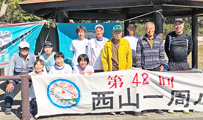 西山一周ハーフマラソン=①塩崎徳雄1時間42分35秒②嶋田有紗③小山美紀▽申告タイムレース=①小山美紀(3・2㌔で誤差7秒)②森本洋次③瀬戸相平④大川美津恵⑤森光子⑥児玉仁志⑦垣森昌也⑧井戸理惠⑨嶋田有紗⑩塩崎徳雄⑪土井伸次