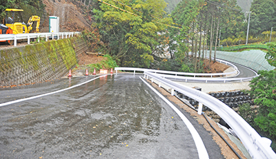 今年7月20日にみなべ町高野地内の県道たかの金屋線で発生した大規模崩土に伴う、う回路の設置工事が完了。29日から供用を開始し、約5カ月ぶりに車での往来が可能となった。