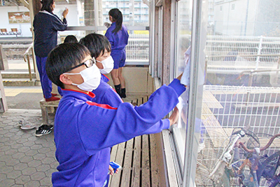 御坊市藤田町藤井の道成寺駅では、駅舎の窓拭きや構内の掃き掃除、自転車置き場のごみ拾いなどに取り組み、きれいにした。