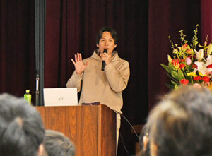 関西を中心に活動しているニホンザル専門の動物プロダクション、株式会社二助企画(大阪市)のトレーナー松原紬(つむぎ)さん(26)が、梅林のオープンと同じく3年ぶりに来演。梅林公園内に特設ステージを設け、相棒のメスザル「こうめちゃん」(6)とともに登場し、おじぎや竹馬乗り、階段からのジャンプなど、息ぴったりのパフォーマンスを繰り広げた。