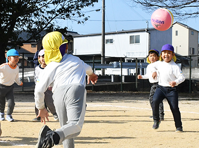 わかば12人、つばさ16人、しらゆり11人が参加し、各園対抗のほか3園合同チームでも対戦。互いに力いっぱいボールを投げ合い、人数が少なくなっても諦めずボールをよけたり、鋭いボールをナイスキャッチしたりする場面では、周りの保育士らが拍手。園児たちは夢中になって楽しみ、交流も深まったようだった。