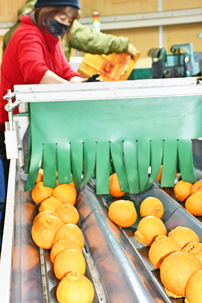 日高川町のJA紀州川辺果樹選果場で、ブランド柑橘「デコポン」の出荷が行われている。3月中旬まで、東京や大阪を中心に「不知火(しらぬい)」全体で約120㌧以上の出荷が見込まれている。