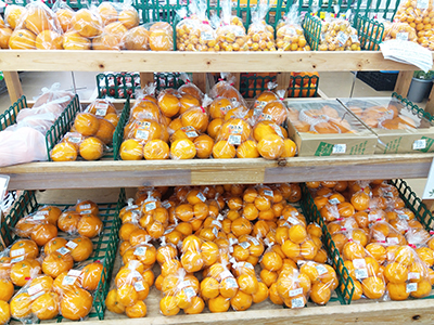 店内は、旬の果物や野菜、春のお花が充実しています。