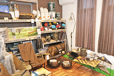 バトラコスはギリシャ語で「カエル」という意味があり、奥さまがカエルが好きという事から名づけたそう。内装作りやカエルをモチーフにした手描きの絵のロゴなど手作りにこだわりが詰まっています。店内には、初心者から上級者向けのアウトドア用品が所せましと展示されていて、デザインや使い勝手など魅力的なアイテムを見て楽しめる空間となっています。なかでもオススメは、いま話題沸騰の「サンゾクマウンテン」のランタンハンガーショックセット。サンゾクマウンテンは、すべて自社製作のオリジナルブランドです。焚火テーブルやフライパン、鉄のハンマーなど斬新でワイルドかつクールなキャンプ用品を製作しています。人気のため入手困難な商品もあるそうで、実際の商品を見たいという人も多くいるのだとか。