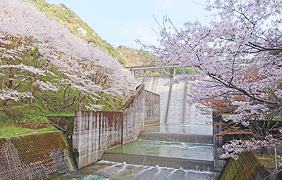 桜の名所として知られるみなべ町東神野川の島ノ瀬ダムで、美しい花が満開となっている。