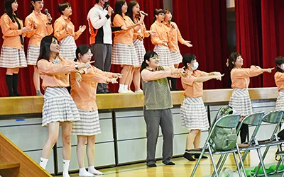 日高高校では体育館で歓迎式を開き、全校生徒が大きな拍手で迎え入れた。山本直樹校長は「3年間、外国との交流ができず、ようやく迎え入れることができました。心から歓迎します。本校の生徒と交流し、日本の中学校、高校の生活をみてください」、生徒会長の米田琴葉さん(3年)が現地の言葉や英語で「ウェルカムトゥヒダカハイスクール」と喜びを表現。台湾の代表生徒は「お互いを余すことなく知り合いましょう」などと流ちょうな日本語であいさつした。