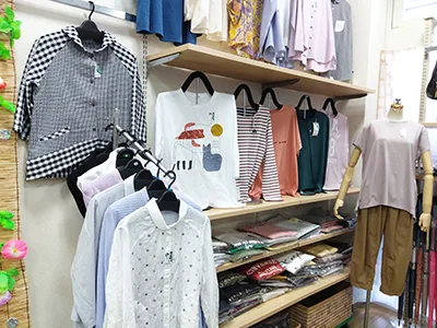 また、エプロンや帽子も多数展示しています。お母さんのプレゼントに悩んでいる人に、ステキな贈り物を提案してくれます。気軽にご来店を。