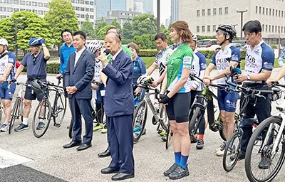 コロナの影響で4年ぶりの開催。会長の二階俊博衆院議員は「交通事故をなくし、健康にも環境にもいい自転車の活用をさらに推進していこう」とあいさつ。政府の自転車活用実行本部長の斉藤鉄夫国土交通大臣、立憲民主党代表の泉健太衆議院議員、ゲストとして自転車アンバサダーでタレントの稲村亜美さん、安田大サーカスの団長安田さんらが自転車の良さをアピールした。