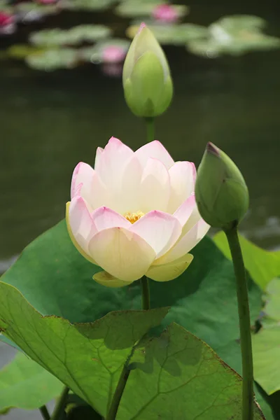 1966年に故阪本祐二氏がアメリカの黄花ハス「王子蓮」と日本の「大賀ハス」を交配して作り出した御坊で生まれた品種。池には数株が植えられており、薄ピンク色で華やかな大輪(直径20㌢)が1輪咲いた。