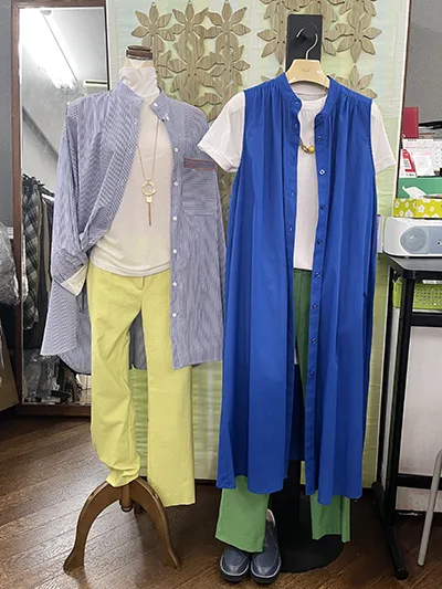 店内の夏物アイテムを30%OFFでご奉仕! 気分は夏真っ只中。カラフルなアイテムを取り入れて開放的で華やかさに満ちた夏のオシャレを始めませんか。清涼感のあるワンピースでお出かけ気分を…♪ 一枚で様になるプルオーバーなど新鮮なアイテムを取りそろえ。歩くたびに軽やかにふんわりと広がる着映え抜群のスカートやパンツも入荷しています。