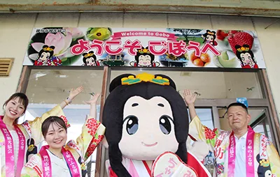 観光PR大使を務める俳優でモデルの坂尻夏海さんは「看板に御坊の観光名所などが盛り込まれています。御坊の魅力を大勢に知ってもらいたい」と話し、駅長の大串昌広さんも「コロナの感染上の位置づけが2類相当から5類に移行し、観光客が増えてきました。歓迎の気持ちを示す看板を設置していただき、大変ありがたいです」と話していた。