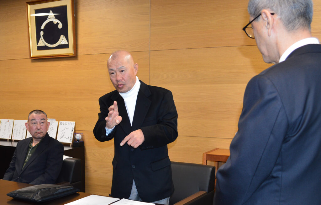 要望活動には同協会の杉本達彦会長、大嶋健二さん、中島美雪さんのほか、村上宗隆市議も同行。杉本会長が「手話が言語であることの認知を広め、手話言語法の制定に結びつけるとともに、2025年東京デフリンピック(11月15~26日)の機運醸成につなげていただきたい」などと手話で説明し、来年9月23日に市庁舎をブルーライトアップするよう求めた。