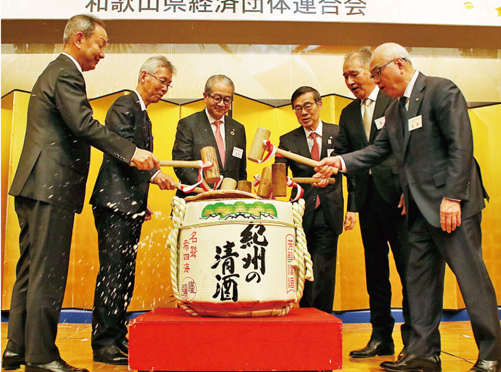 県内経済5団体で構成する県経済団体連合会は8日、和歌山市のホテルで2025年の新春賀礼会を開き、県政財界から約380人が出席した。