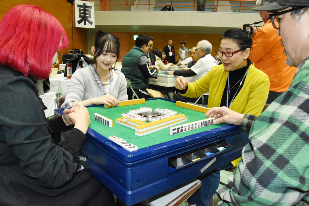 参加者は真剣な表情で牌を手にして「ツモ」「ロン」と軽快な声を響かせ、上がると笑顔も。プロと対戦した卓では、プロならではの攻め寄りの戦術や流れるような手さばきに感心していた。プロ雀士の記念撮影やサイン会の時間もあった。