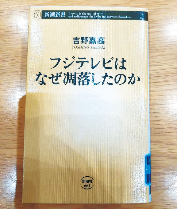 著者は、あるとき就職面接を担当した。全国から多くの学生が入社試験に来ていたが、合格の第一は「扱いやすい」人物を選んでいた傾向にあったという。また一九八〇年代から続いていた視聴率三冠王が九〇年代になり日本テレビに奪われた。二〇一一年には三冠王を取り戻したが、八〇年代に掲げていたキャッチフレーズ「楽しくなければ、テレビじゃない」を再び前面に押し出した形で立て直したのだ。有名な番組としては、「オレたちひょうきん族」「笑っていいとも」「THE MANZAI」。ドラマでは「月9」に代表される「東京ラブストーリー」「ロングバケーション」「古畑任三郎」等である。またそれに続く「HERO」「踊る大捜査線」など。これらはいずれもシリアスな中にもコミカルな内容であった。しかし、この「楽しくなければ」というフレーズを次第に取り違えていったのではないか、と著者は書いている。その代表例が、「料理の鉄人」を焼き直した「アイアンシェフ」である。いかにもバブリーな内容であったが時代をはき違え、この「アイアンシェフ」は半年で打ち切られた。そしてフジテレビの凋落は経営者の責任ではないのかと著者は続けるのである。