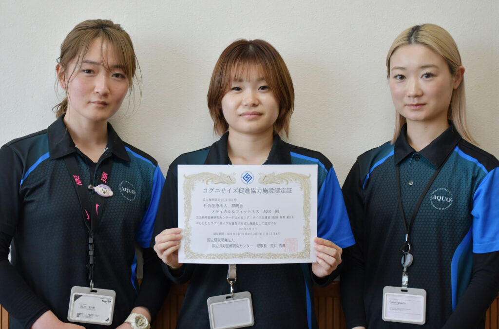 御坊市の社会医療法人黎明会のメディカル&フィットネスアクオが、国立長寿医療研究センターが定めるコグニサイズ促進協力施設として県内初の認定を受けた。