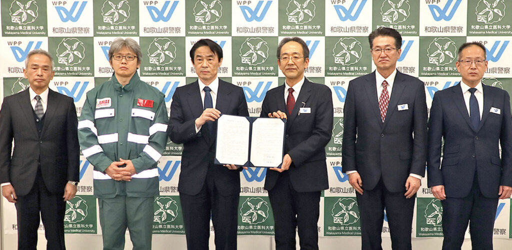 県警と県立医科大学は3日、人質立てこもりなど凶悪事件の現場で負傷者の救命救急にあたる医療派遣チーム「和歌山IMAT」の運用に関する協定を締結した。人質や警察官など負傷者が出る恐れがある場合、警察の要請を受けて医師や看護師のチームを現場に派遣。けが人が出たときには、救急搬送されるまでの応急処置を行う。同様の協定の締結は全国で16例目となる。