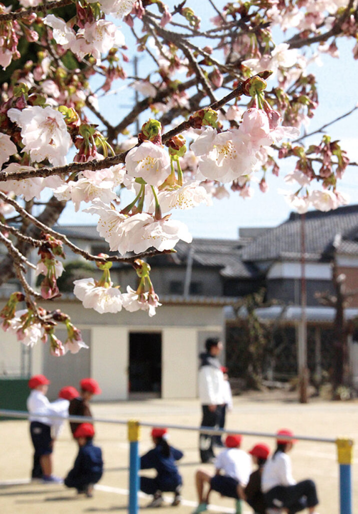 日高川町の川辺西小学校(宮本智子校長)で、「卒業桜」と呼ばれる早咲きのクローン桜が見頃を迎えている。