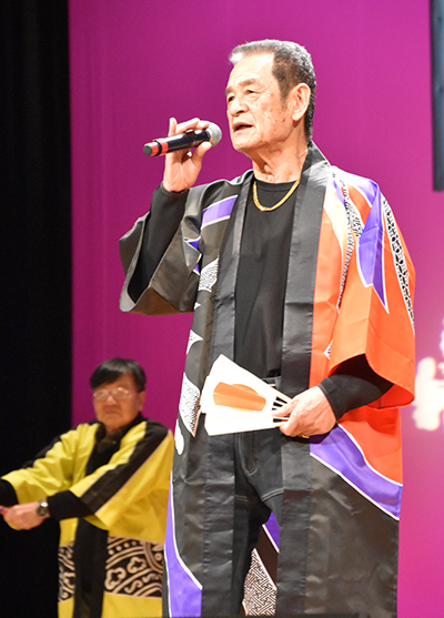 トップは道武和さんのうたう「博多純情」。博多の祭り祇園山笠をイメージして友人たちが後ろでまといを振って応援し、勇ましい法被姿で堂々とうたい上げた。