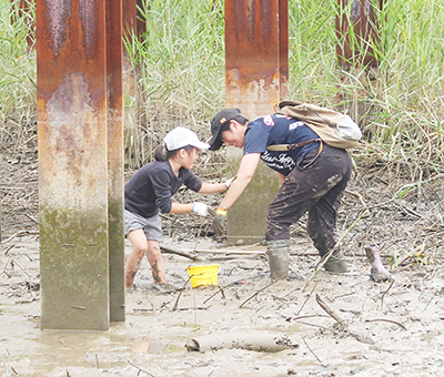 塩屋文化協会(溝口善久会長)の「日高川の干潟観察教室」が8日、御坊市塩屋町北塩屋の日高川河口で開かれた。
