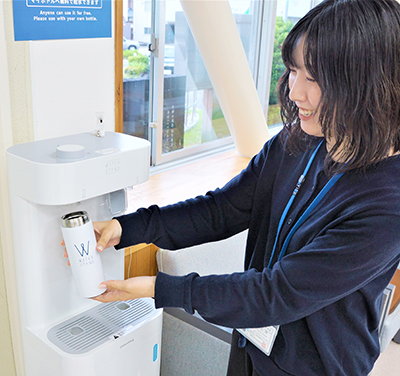 提供されたウォーターサーバーは役場本所、中津支所、美山支所、川辺東小学校(試験的)の4カ所に設置。ろ過したおいしい水が給水され、来庁者らが無料で水を容器に移すことができる。