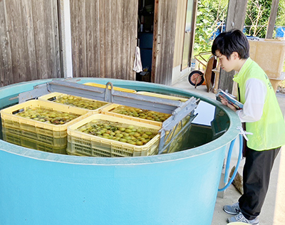梅干し加工品に害虫のケシキスイの幼虫が混入するのを防ごうと、みなべ町や梅生産者らでつくるみなべ梅対策協議会(会長=山本秀平町長)は今年も、事業所や農家の巡回パトロールを展開している。ケシキスイは落ちた梅の実に侵入することがあり、梅干しの品質を守るために毎年、対策の徹底を啓発。収穫した落ち梅を30分以上きれいな水に漬けることが有効な対策で、産地として徹底して実行しているかを協議会メンバーが巡回して抜き打ちでチェックしている。