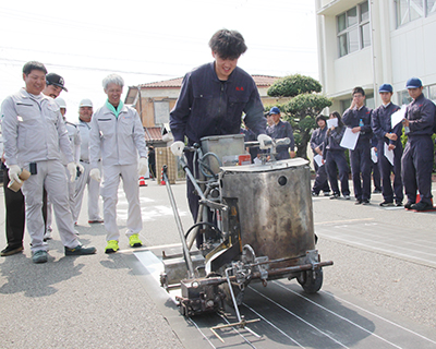 紀央館高校の工業技術科3年生35人が7日、路面標示工事を体験した。